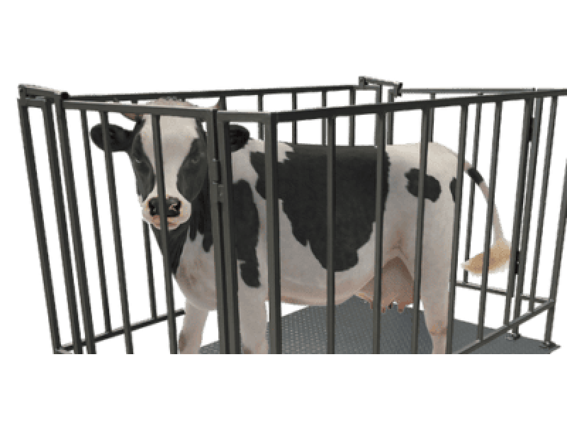 Поставьте платформенные передвижные весы с сильным барьером. Тензодатчики надежно защищены от механических воздействий, влаги, грязи. Они отличаются лимитом взвешивания (от нескольких тонн до десятков) и размерами платформы. Поверхность платформы должна быть рифлена, чтобы животные не соскальзывали.
